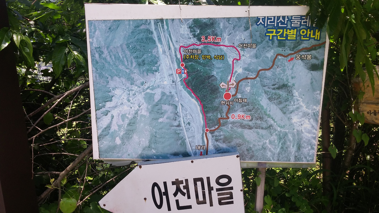 하산하면서 가장 가까운 어천마을을 찾아서 내려갔다. 하산길도 무척이나 힘들다. 우선 무엇이던 먹어야만 한다는 생각뿐이었다. 어천마을 입구에서 보이는 마을전경이 무척이나 아름다웠다. 알록달록한 색깔을 입은 집들이 옛것에서 벗어나 새로운 색깔로 거듭 태어나고 있었다. 아마도 풍경이 좋아 외지인들이 귀촌하며 사는 동네인 듯하다. 막 첫 집을 지나는데 화단을 가꾸시는 아주머니가 계셨다. 지나치다가 되돌아가서 물어보려 하니 아주머니가 먼저 말을 걸어 주셨다. 물이 맑으니 마시고 가라는 것이다.