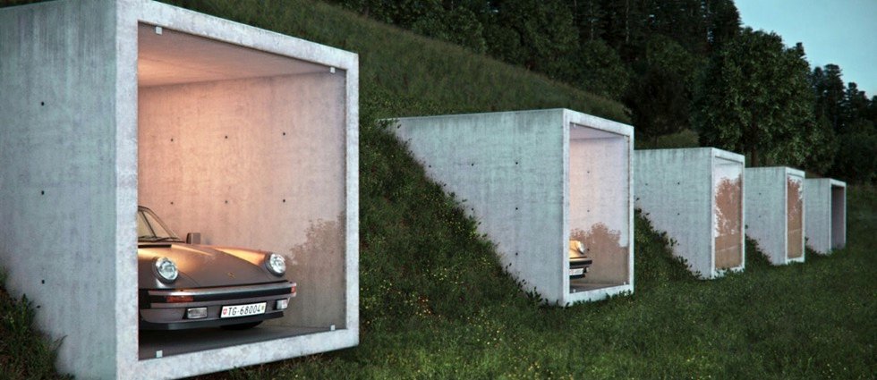비스듬한 언덕에 단 8대의 자동차만이 네모난 큐브속에 들어갈 수 있습니다. 스위스의 전경이 환상적이니 가능한 구성이긴한데, 과연 얼마나 실용성이 있을지는 조금 의문이네요.