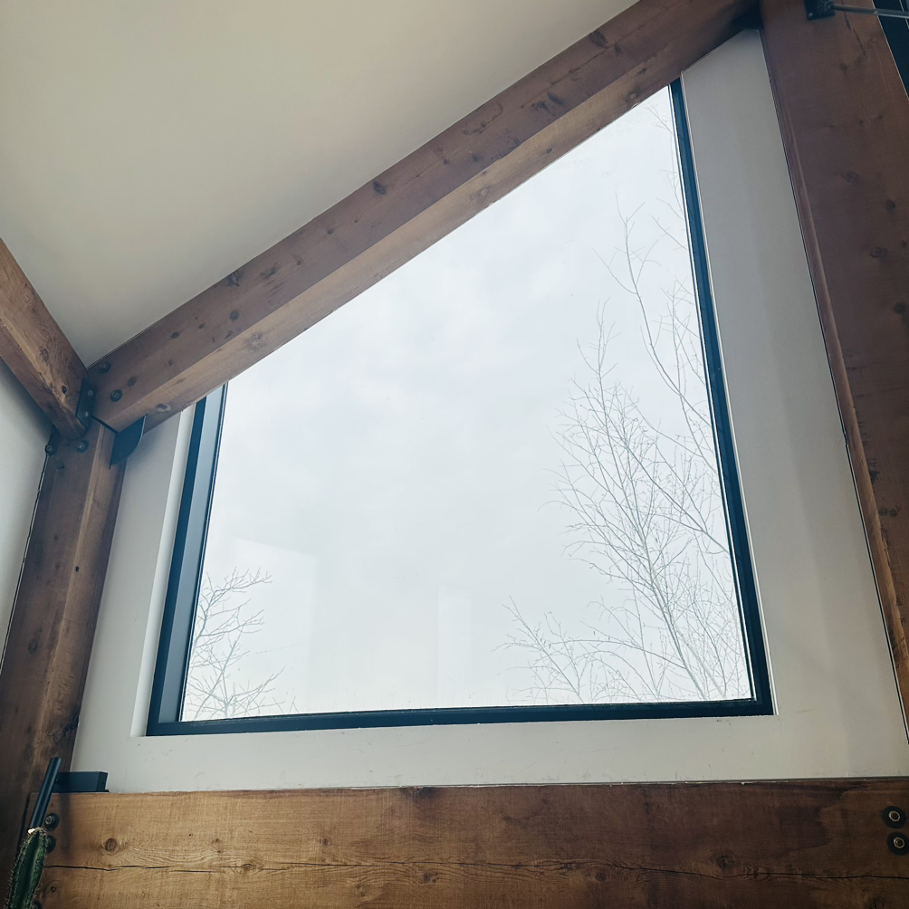 1층으로 내려가는 계단에서 보이던 사다리꼴 창문.