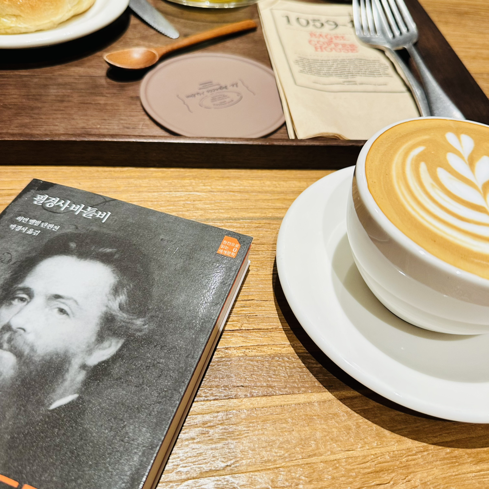수업 시작 전 미리 만난 문우와 커피 한 잔 하기 위해 찾은 곳은 '베이글 앤 커피하우스'라는 카페였다.