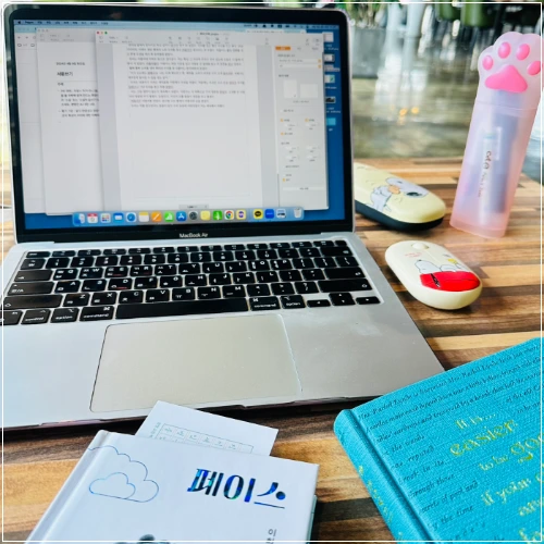 알리에서 물건을 주문하고 선물로 받은 고양이 펜슬케이스에 담아 온 펜도 꺼내고. 이번엔 마우스도 챙겼다.