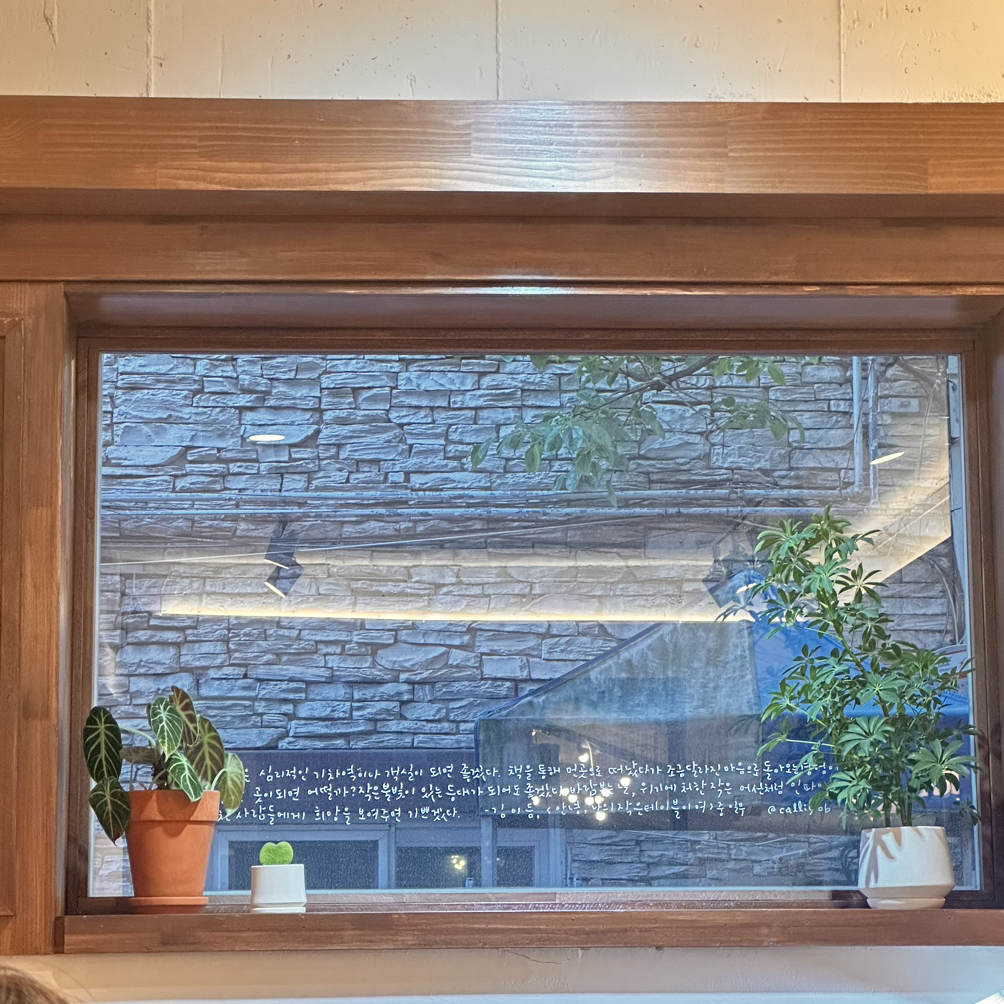 넓은 창에 쓰인 글귀 또한 시일 것이고 책 속 한구절일 테지.