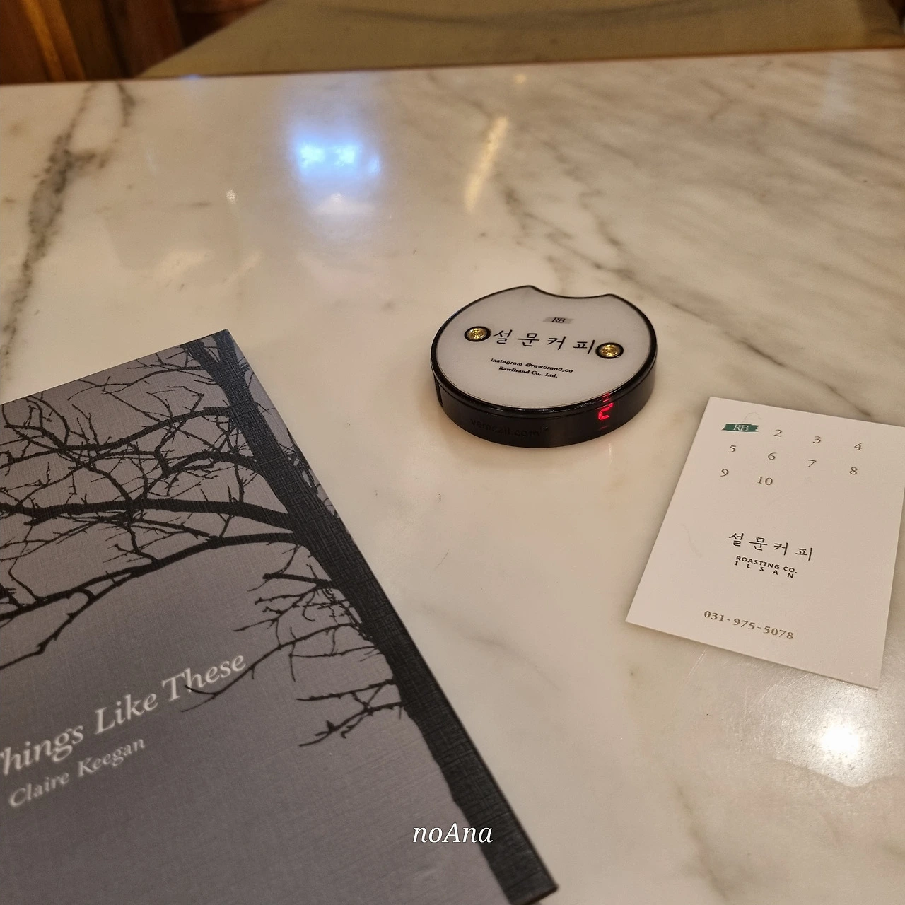 궁서체로 쓴 카페명과 10까지의 숫자가 새겨진 명함사이즈의 심플한 카드다.