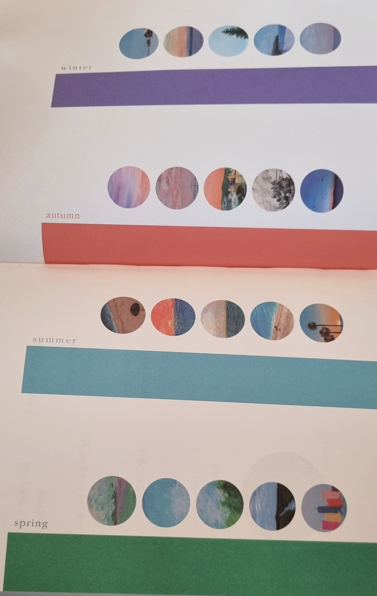 각 계절마다 동그란 원안에 그림을 품고 있다.
