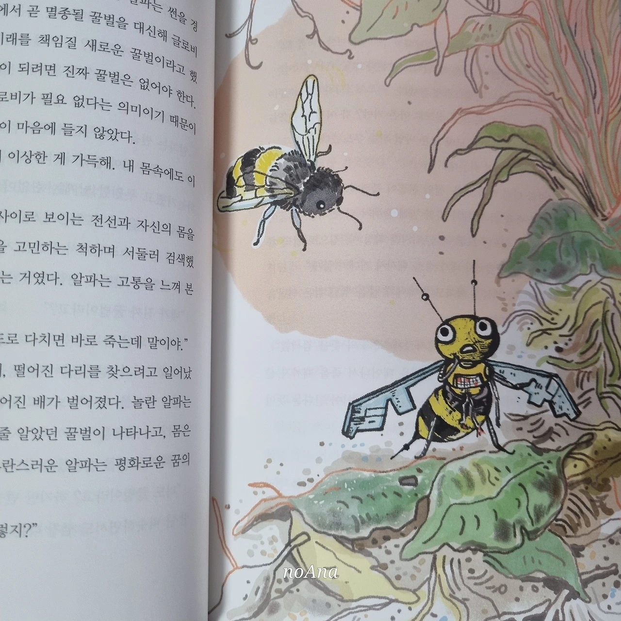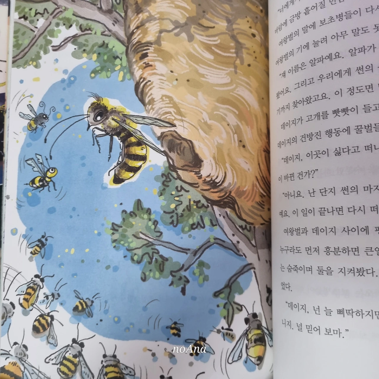 꿀벌들을 품고 있는 벌집은 거대한 생명체 같았다. 격납고와는 완전히 다른 느낌이었다. 이곳은 살아 있고, 격납고는 죽은 공간이었다. p126