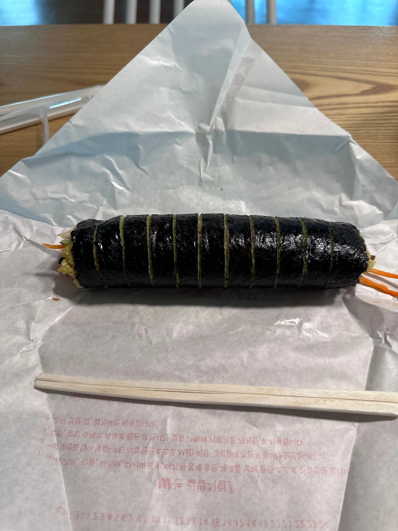 집 근처 김밥집에 들러 고추냉이김밥, 계란말이김밥, 왕순이김밥을 샀다.
