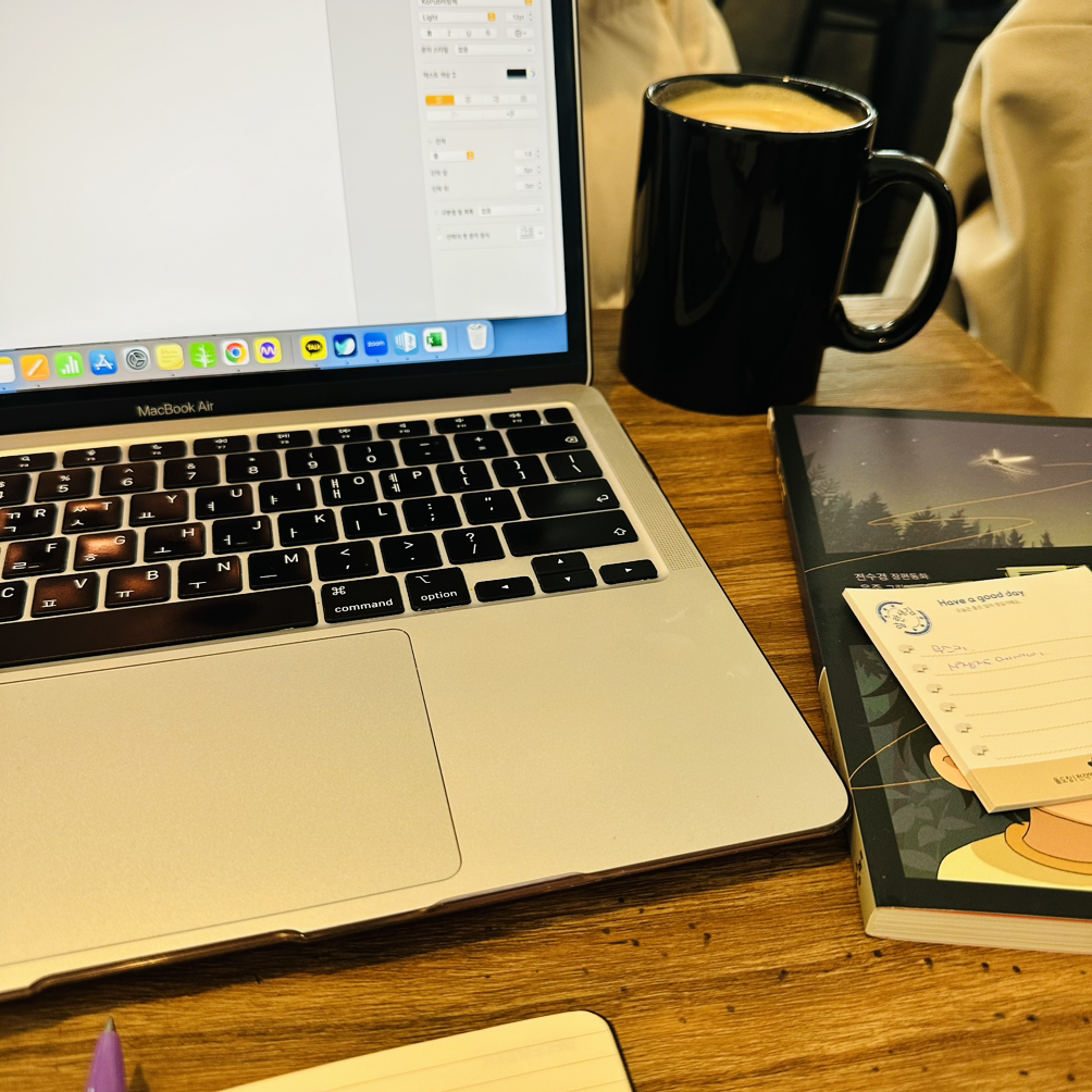 이제 본격적으로 에세이를 작성해 볼까 했더니 딸이 이제 그만 가자고 한다. 일단 이 라테를 다 마시고 일어나겠다는 의지로, 자판을 두들기고 있다.