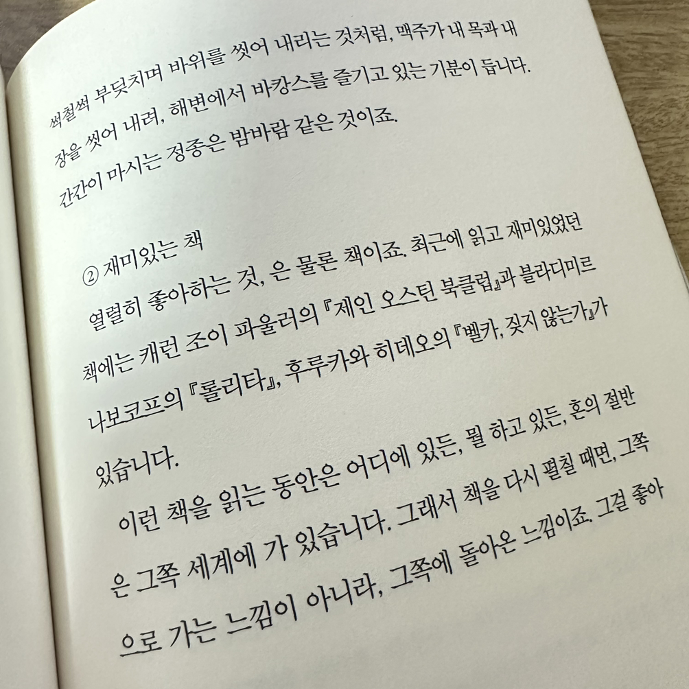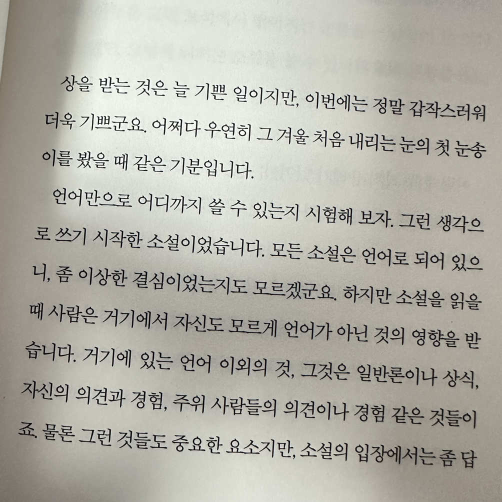 잡지에 실린 짧은 소설과 에세이를 묶은 책이다. 매번 장편소설만 읽어오다 이 책을 읽으니 작가의 일상을 들여다보는 기분이라 더 가까워진 듯했다.