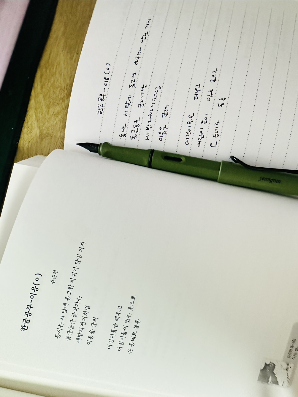 확실히 필사를 하면 동시를 좀 더 곱씹어 볼 수 있어서 좋은 것 같다.