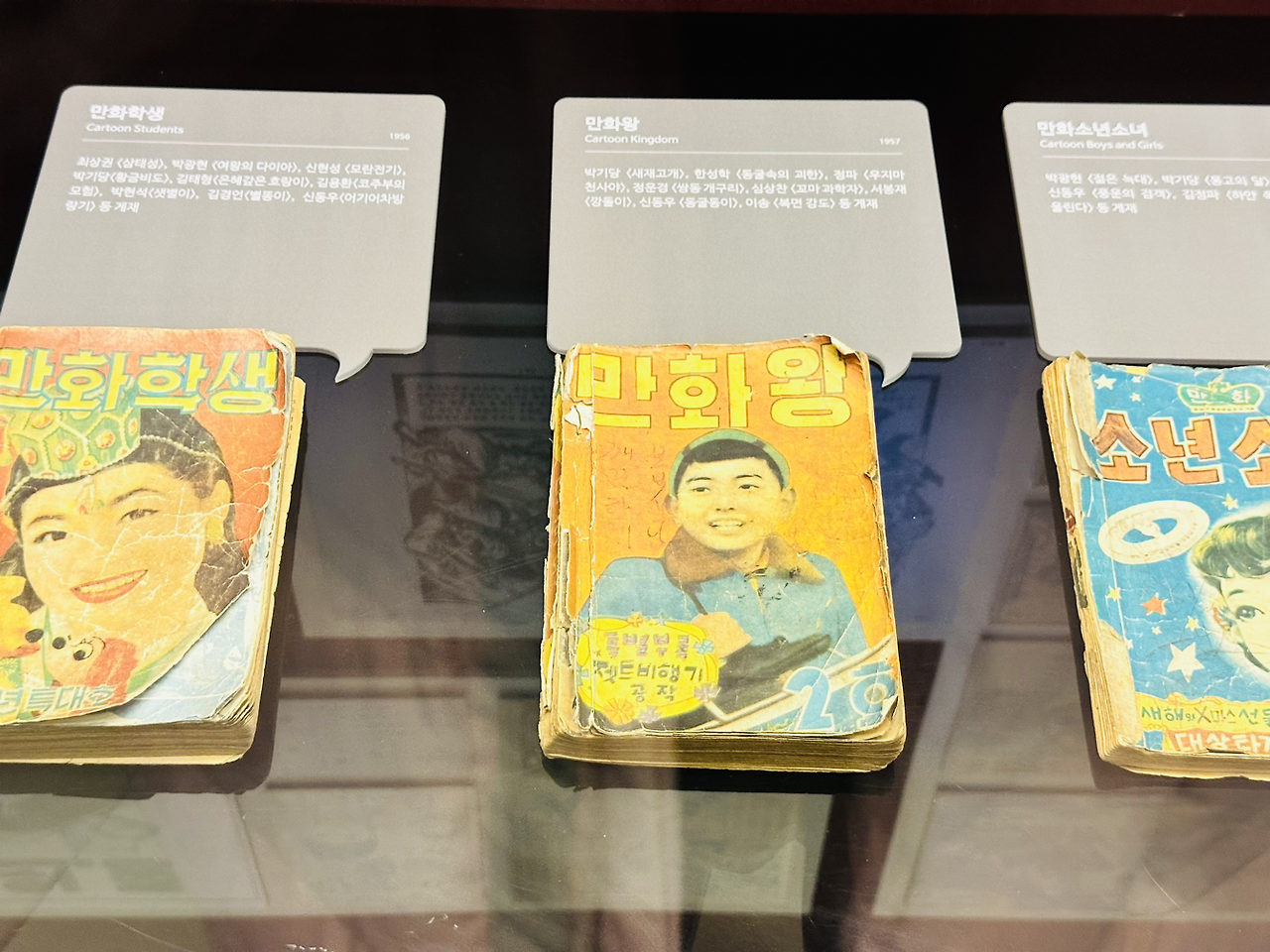 지난 만화를 볼 수 있는 공간이 있었다. 만화의 역사는 물론 60,70년대 만화까지 볼 수 있었는데 확실히 예전과 현재는 소재가 달랐다. 아이들은 존중받는다기 보단 소유물에 가까웠고 여성 역시 학대의 대상으로 많이 비쳤다.