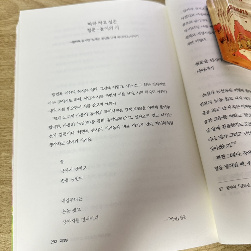 질문하는 것이 함민복시인의 동시 방법론이라고 했다. 어떤 글을 쓰던지 왜 이 글을 쓰는지에 대한 사유가 필요하다. 단순한 질문에서 글은 시작된다.