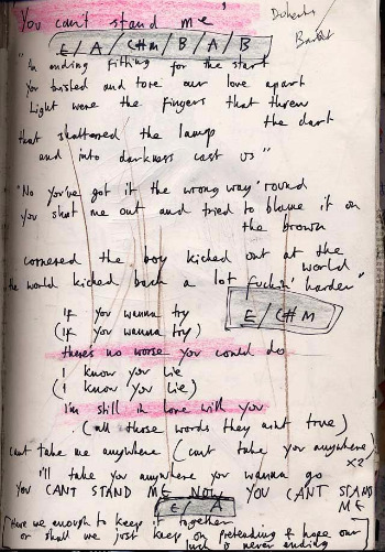 가사의 일부분만 보아도 둘의 위태롭던 상황을 쉽게 알 수 있는데, 칼 바랏이 '넌 우리의 사랑을 찢어버렸다'로 시작하면, 피트 도허티는 '아냐, 넌 아무 말도 못 하게 막아놓고 모든 게 마약 탓이라고만 하잖아'라며 응수한다. 그러고는 코러스에서 같이 넌 날 견딜 수 없다며 (Can't stand me now) 노래를 부르는데 이처럼 진실된 곡이 어디 있을까?