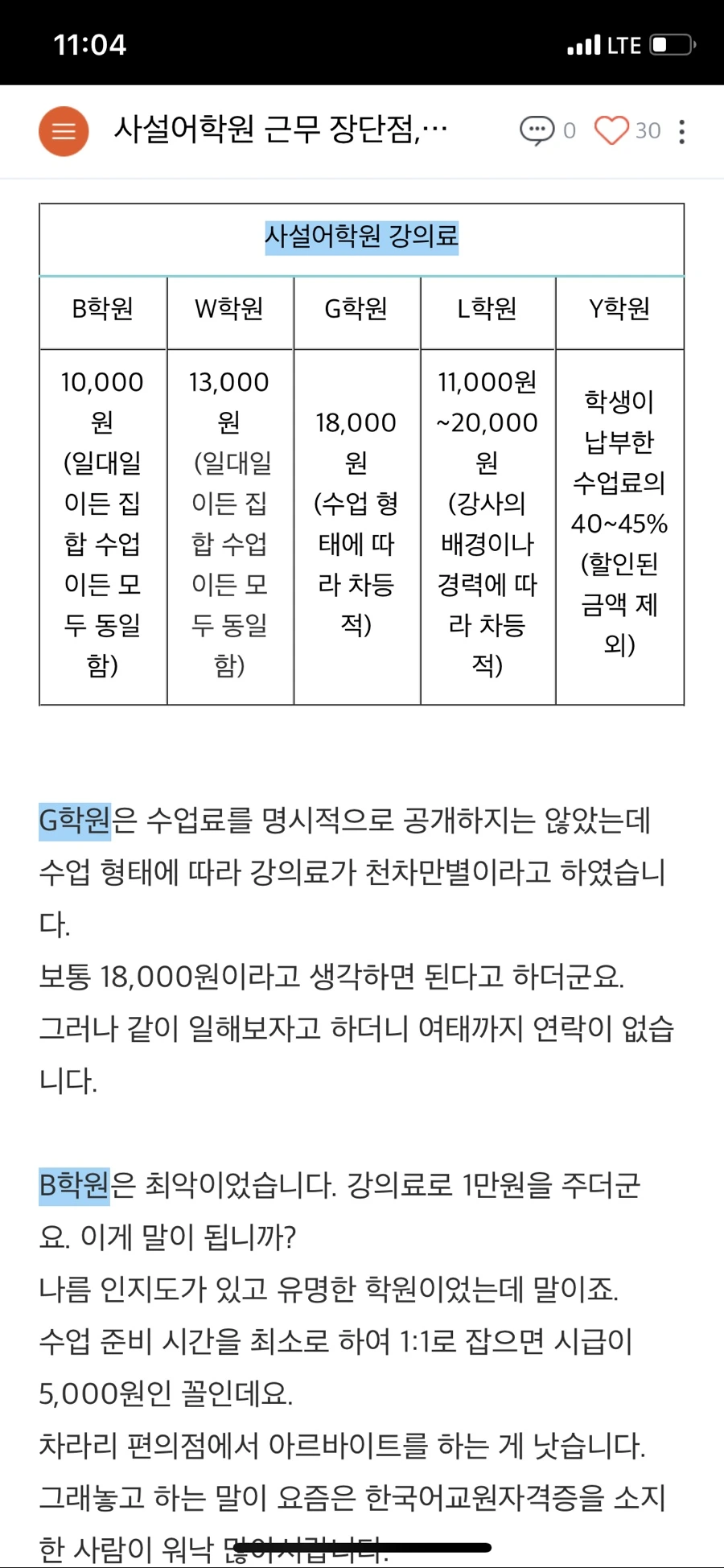 이 글을 쓰고 있는 지금은 벌써 다섯 달 째 같은 학원에서 일을 받고 있다. 물론 매일매일 수업 준비와 수업만 하고 일하는 시간만 따지면 12시간이 넘어도 한 달 생활비가 나오지 않는다.