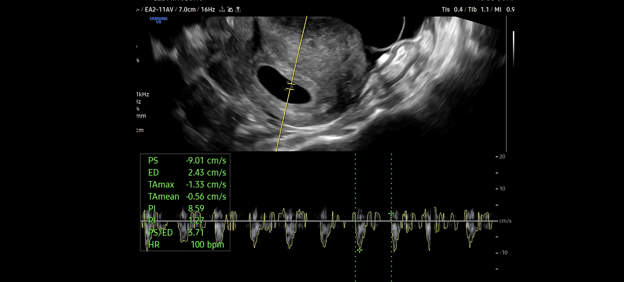 5주 차에 본 것도 행운이고, 심장박동도 정상 범위다.
