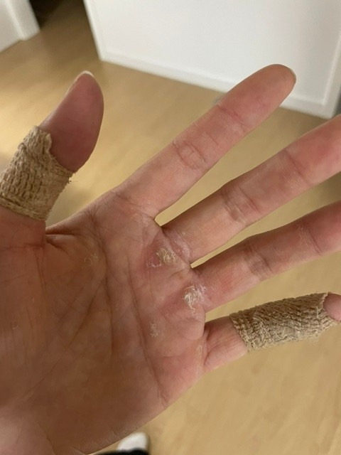 운동하는 곳에서는 남자 손, 여자 손 할 것 없이 연습 많이 해서 까진 손, 훅그립 하다가 멍든 손, 미끄러져서 까진 손, 덤벨에 맞은 손 등 다양한 투혼의 흔적이 남은 손만 존재한다.