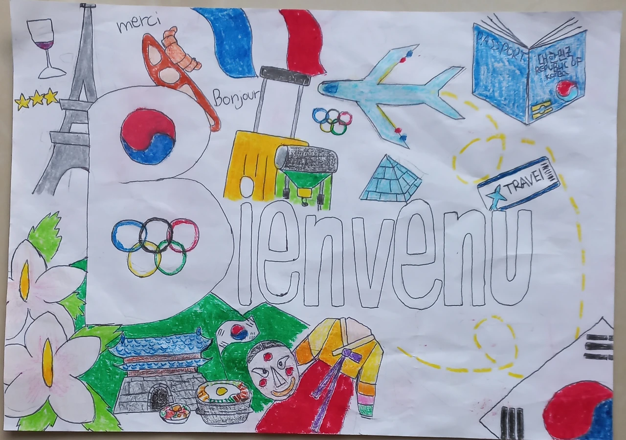 뚤루즈로 가는 비행기 탑승 구역은 터미널 1번 B27번이다. 1시간 15분 비행 후 동생이 있는 뚤루즈에 도착했다. 조카는 직접 그린 웰컴 포스터를 들고 우리를 반겨 주었다.
