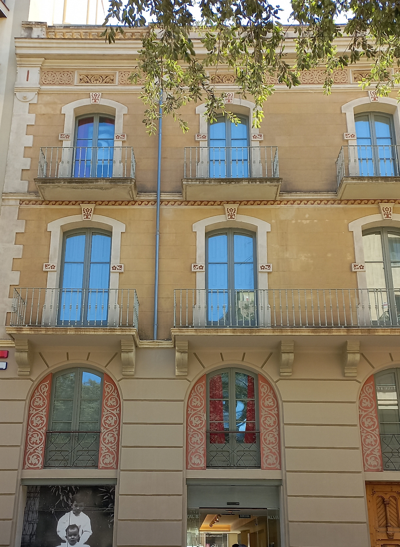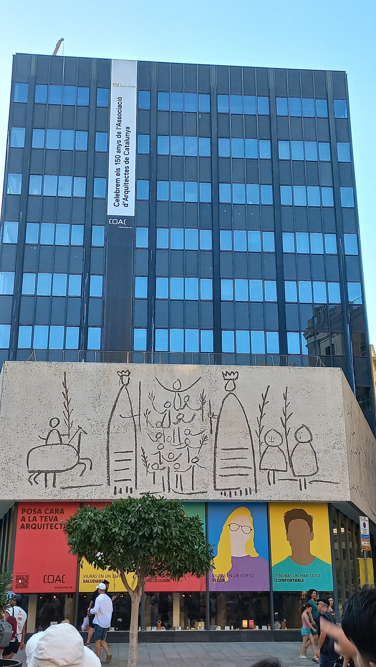 가운데 새는 독수리이고 독수리와 그 아래 원기둥을 감싸고 있는 줄무늬는 까탈루냐를 상징한다.