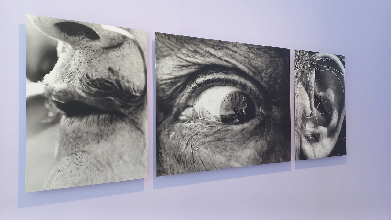 창문에 밖을 내다보고 있는 달리의 눈이 보인다.