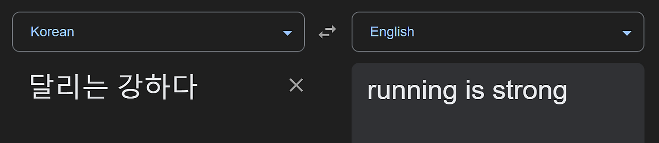 "엄마, '달리는 강하다'. 라고 구글번역에 넣으면 어떻게 영어로 바뀔까?