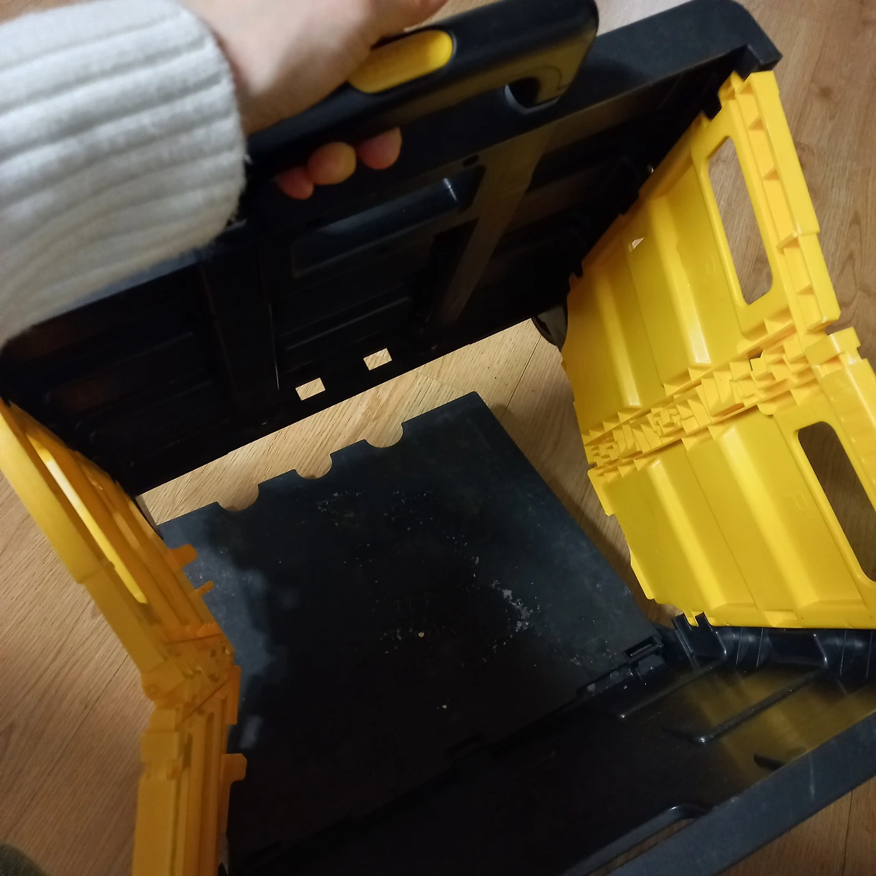 약수가 가득 담긴 물통을 옮기면서 내가 너무 무리를 하는 바람에 수레의 아랫부분이 빠져버렸다.