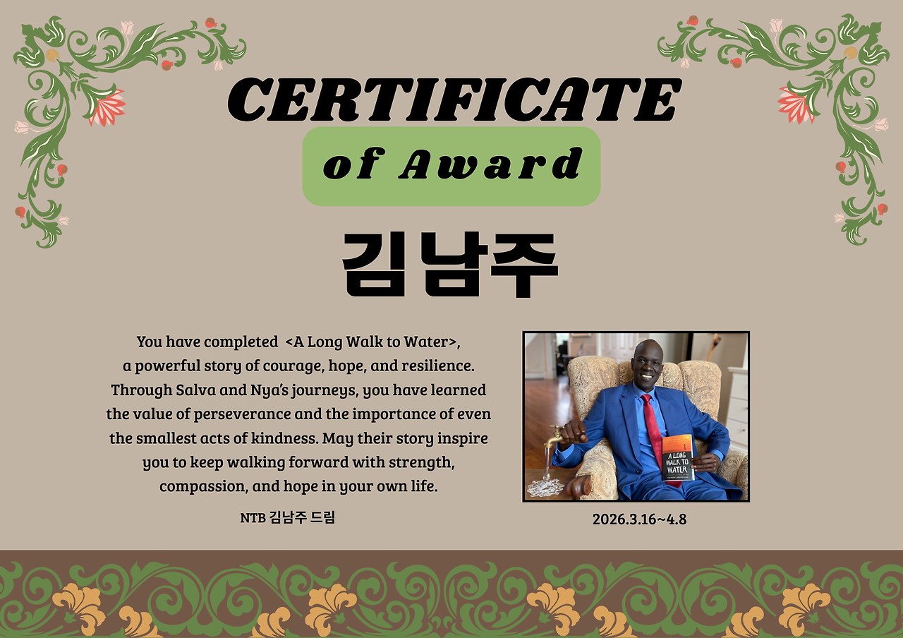 지금 읽고 있는 책은 <A Long Walk to Water / 린다 수 박 / 우물 파는 아이들>이다.