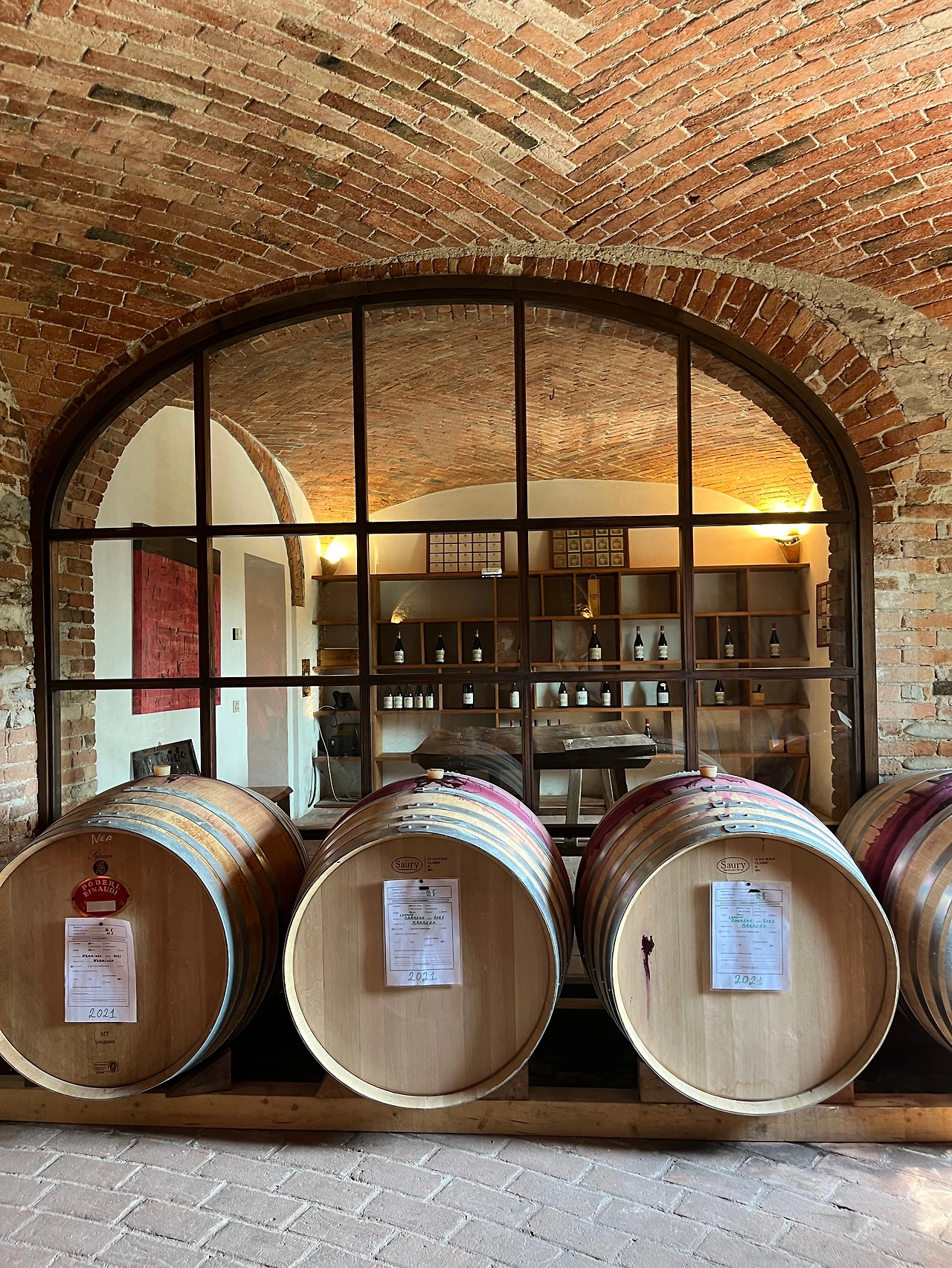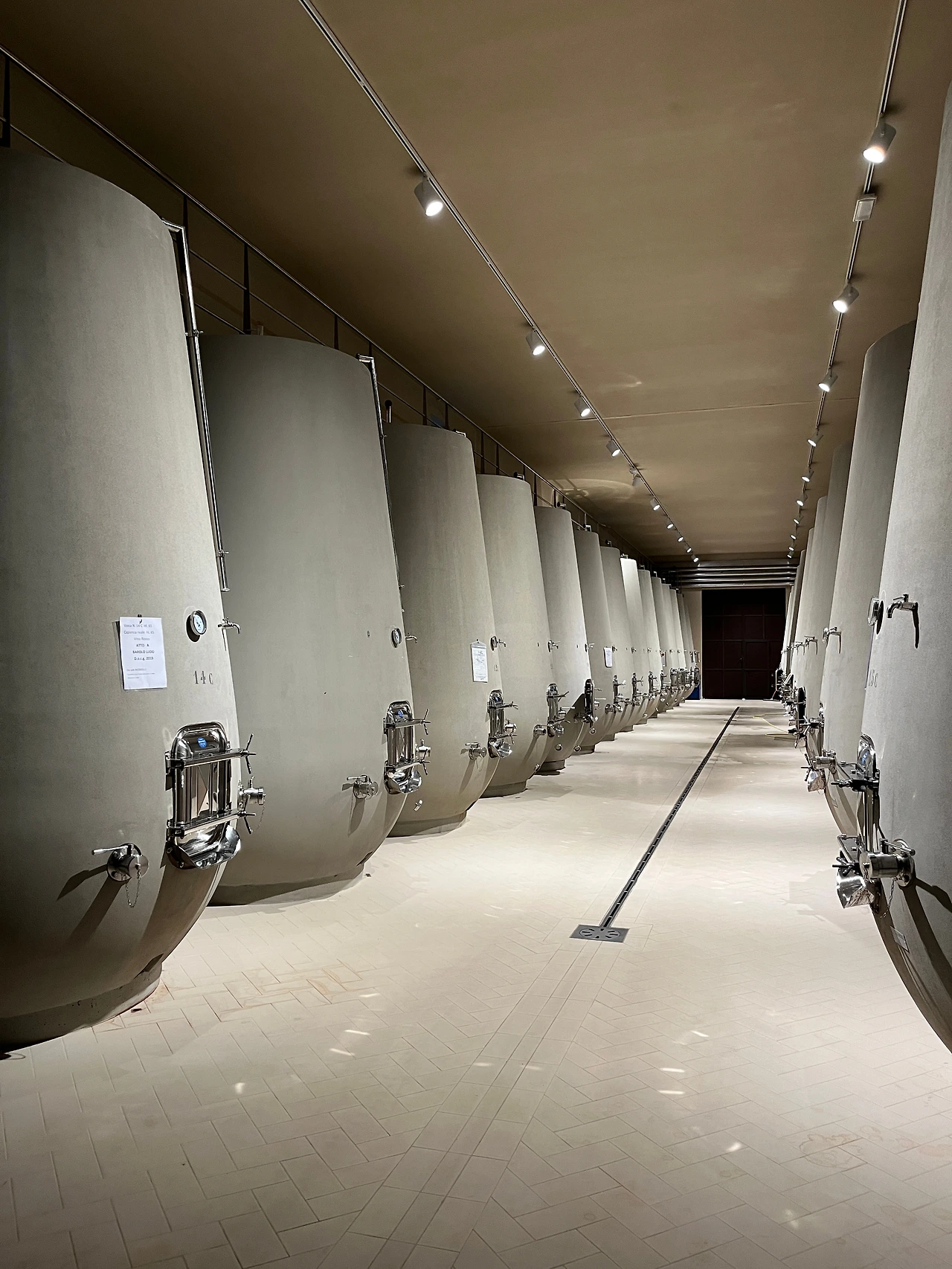 다음날은 프라이빗 투어. 셀러에서부터 시작하는데, 여기도 다른 피에몬테 와이너리들과 같이 지역에서 기존에 써오던 대형 오크통뿐만 아니라 프렌치 바리끄, 토기, 콘크리트 챔버 등 다양한 시도를 하고 있었다. 특히 오래된 와이너리 건물 지하를 파낸 곳에 대형 콘크리트 챔버들이 쭉 일렬로 서 있고, 현대화된 시스템으로 각 챔버를 관리하는 게 퍽 인상 깊었다. 지역 내 와이너리 중에서는 꽤 프로덕션이 많은 규모가 큰 와이너리인 편에 속하는지라, 출하를 대기 중인 와인들이 보관된 곳에 들어갔을 땐 사실 좀 압도되었다.