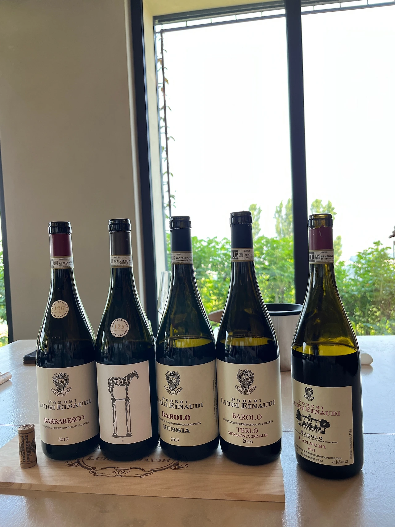 투어의 마무리는 역시 테이스팅으로, 투어를 이끌어 줬던 비토리아가 우리를 위해 좋은 싱글 빈야드들을 많이 내어주었다. 아이나우디의 바롤로 까누비 (Cannubi) 싱글빈야드 2013, 바롤로 부시아 (Bussia) 싱글빈야드 2017, 바롤로 떼를로 (Barolo Terlo Vigna Costa Grimaldi) 싱글빈야드 2016, 바롤로 몬빌리에로, 그리고 바르바레스코를 시음하였는데, 모두 특징적이고 각자의 강렬한 개성을 지니고 있었다.