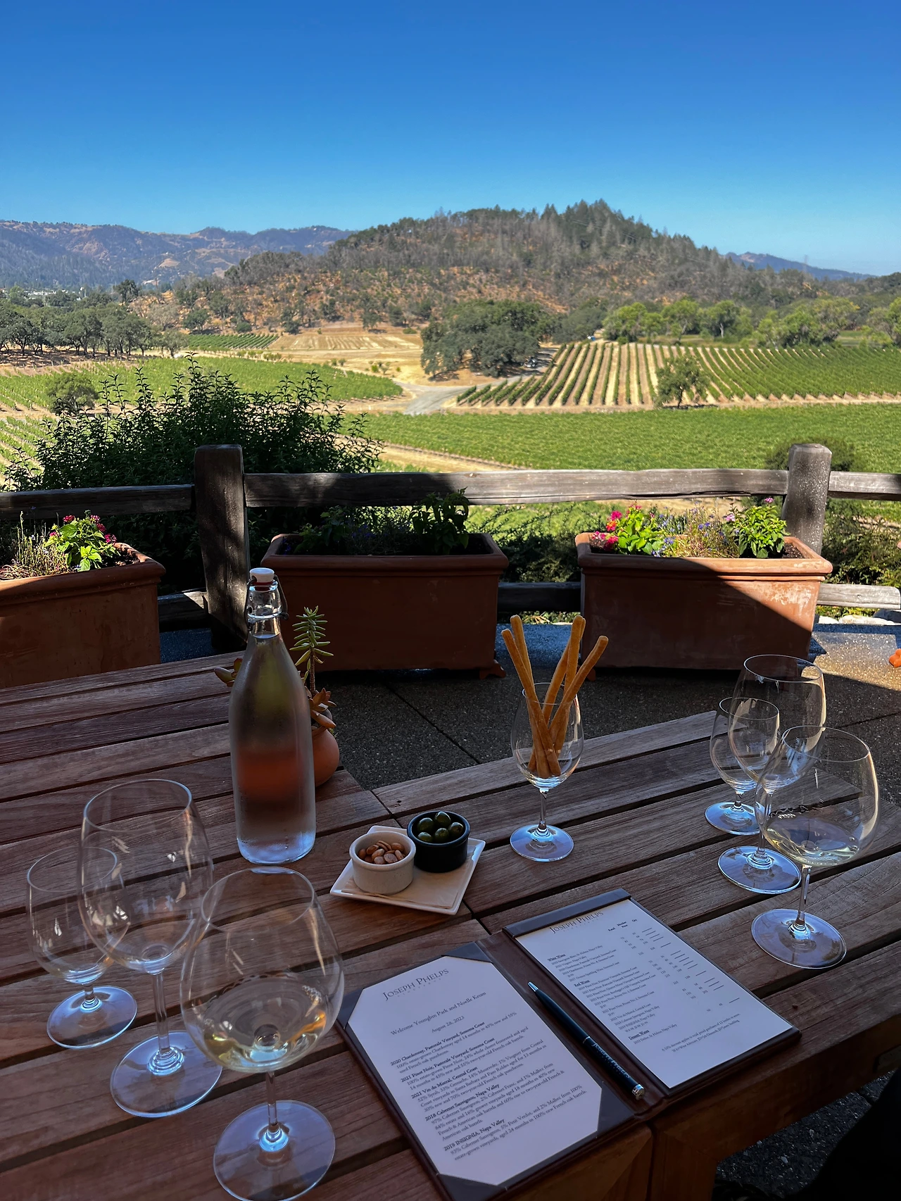 당연히 첫 목적지는 조셉 펠프스였다. 조셉 펠프스는 몬다비와 함께 나파 지역 와인의 가장 큰 개척자 중 하나일 뿐만 아니라, 바커스의 생산자였으니까. 욘트빌 Yountville 에서 St.Helena로 넘어가는 길목, 끝없이 포도나무가 심겨있던 언덕들 사이 멋진 로그 캐빈 건물이 우리를 반겼다. 넓은 포도밭을 내려다보는 테라스에 앉아 테이스팅을 진행했는데, 그날 테이스팅에서 우리가 마신 건: