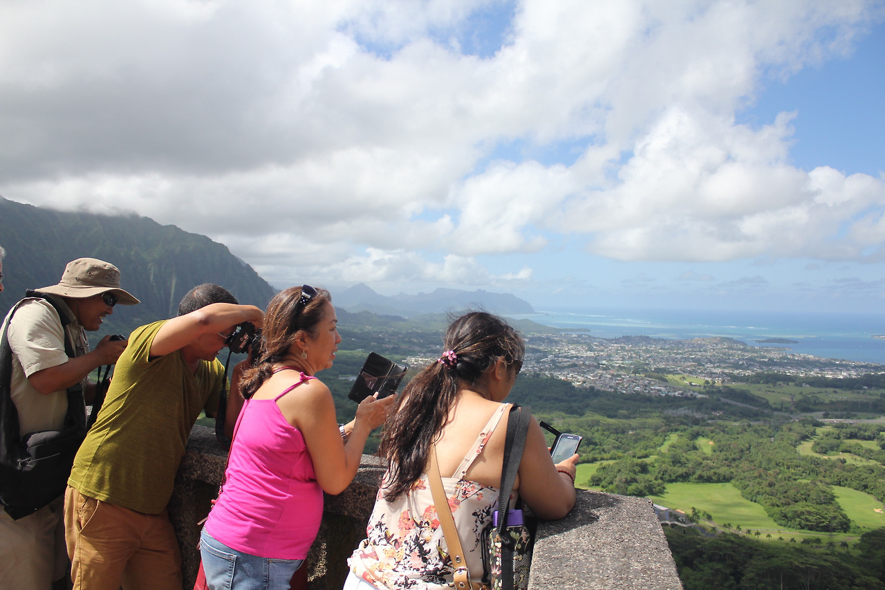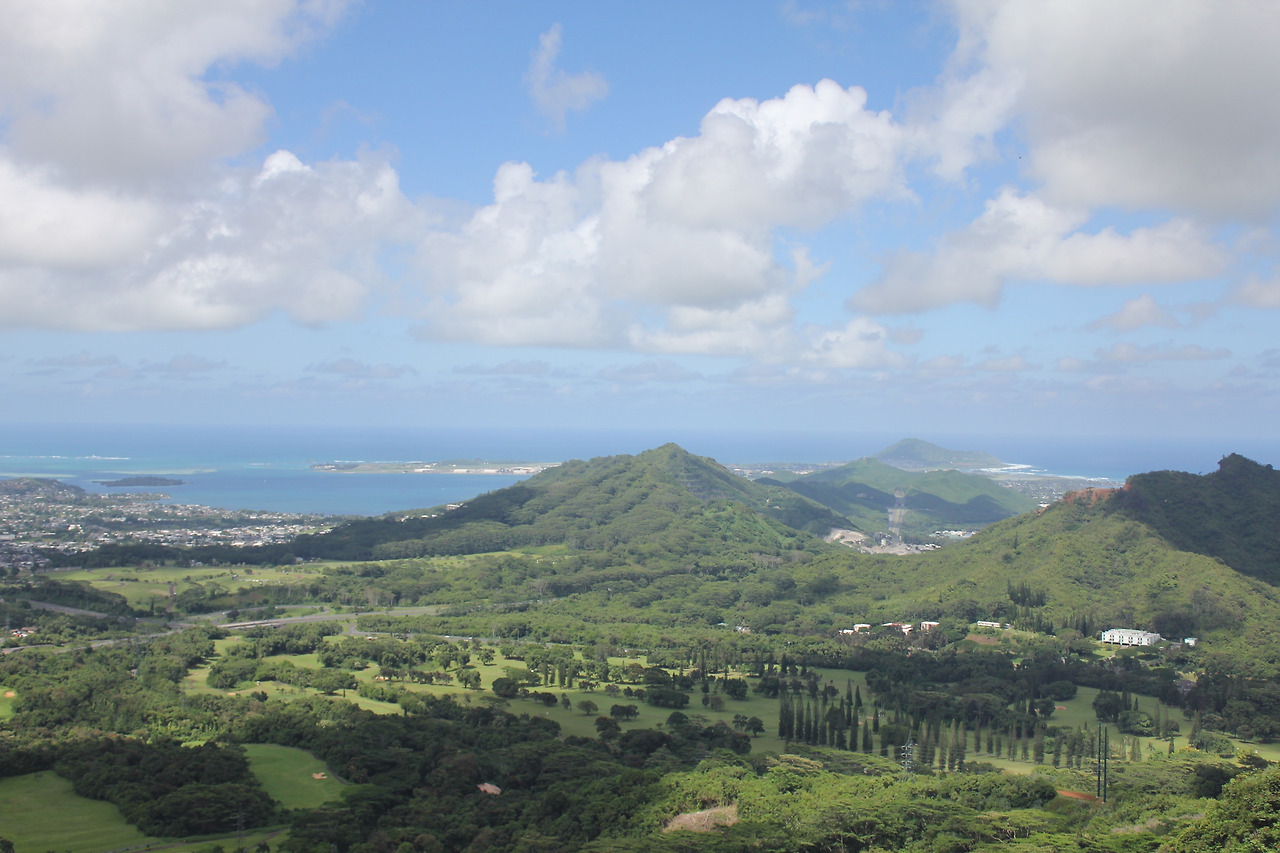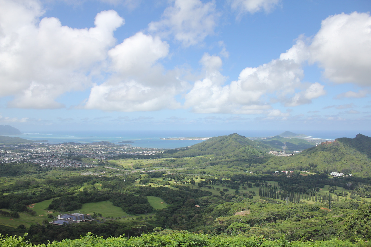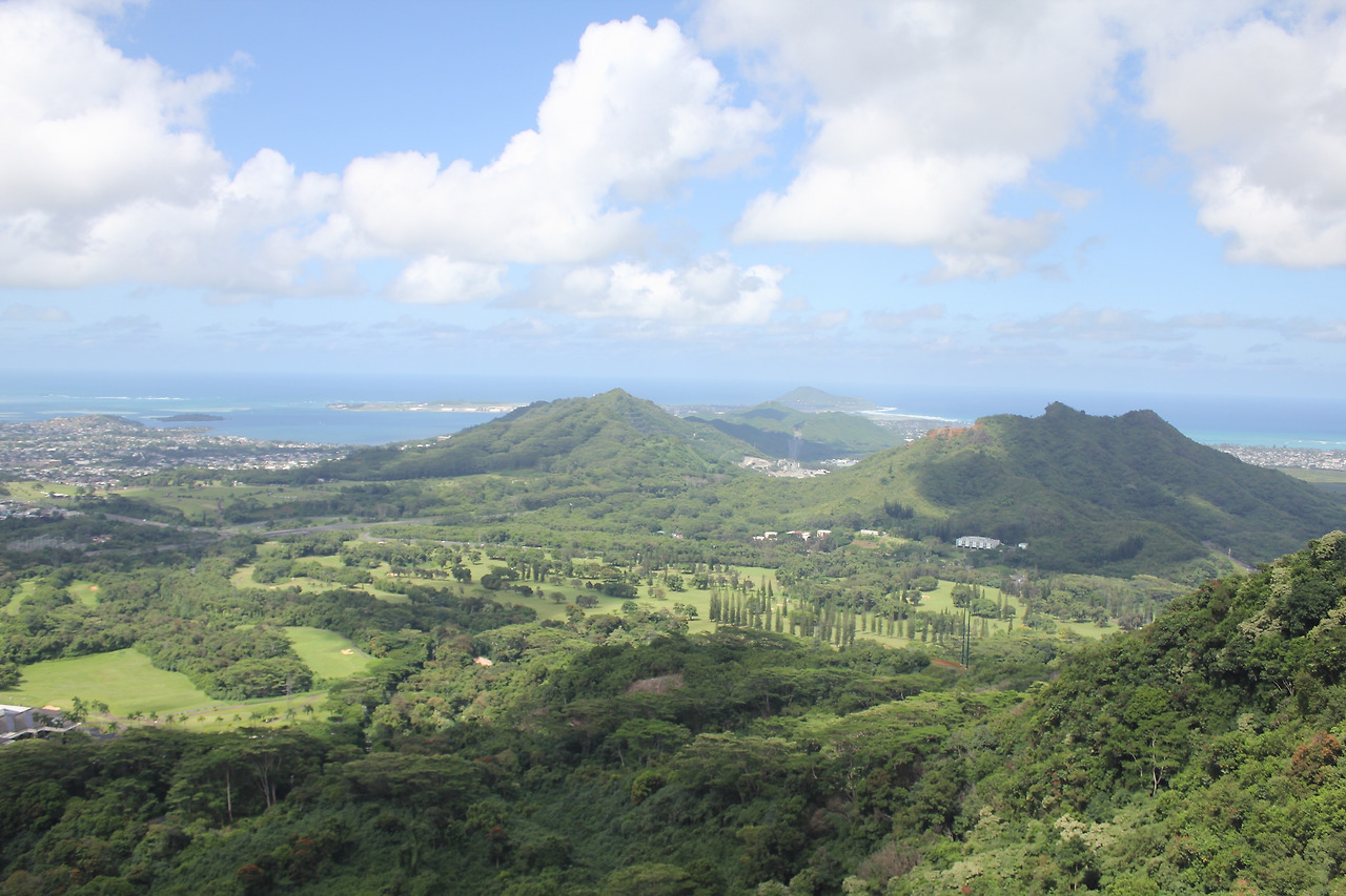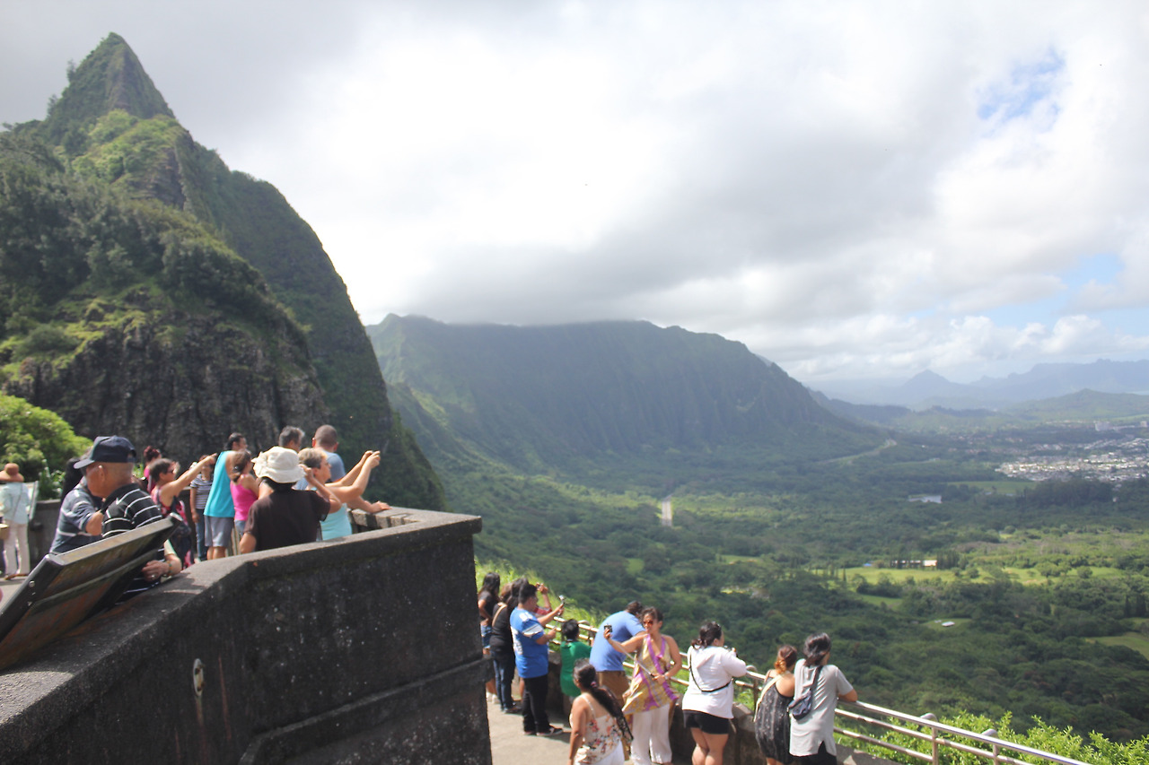 NU'UANU PALI LOOKOUT. 바람산이라 불리는 곳이다. 주차를 하고, 저만치 사람들이 옹기종기 모여 있는 전망대에 다다르면, 거짓말 같은 광경이 눈 앞에 펼쳐진다.