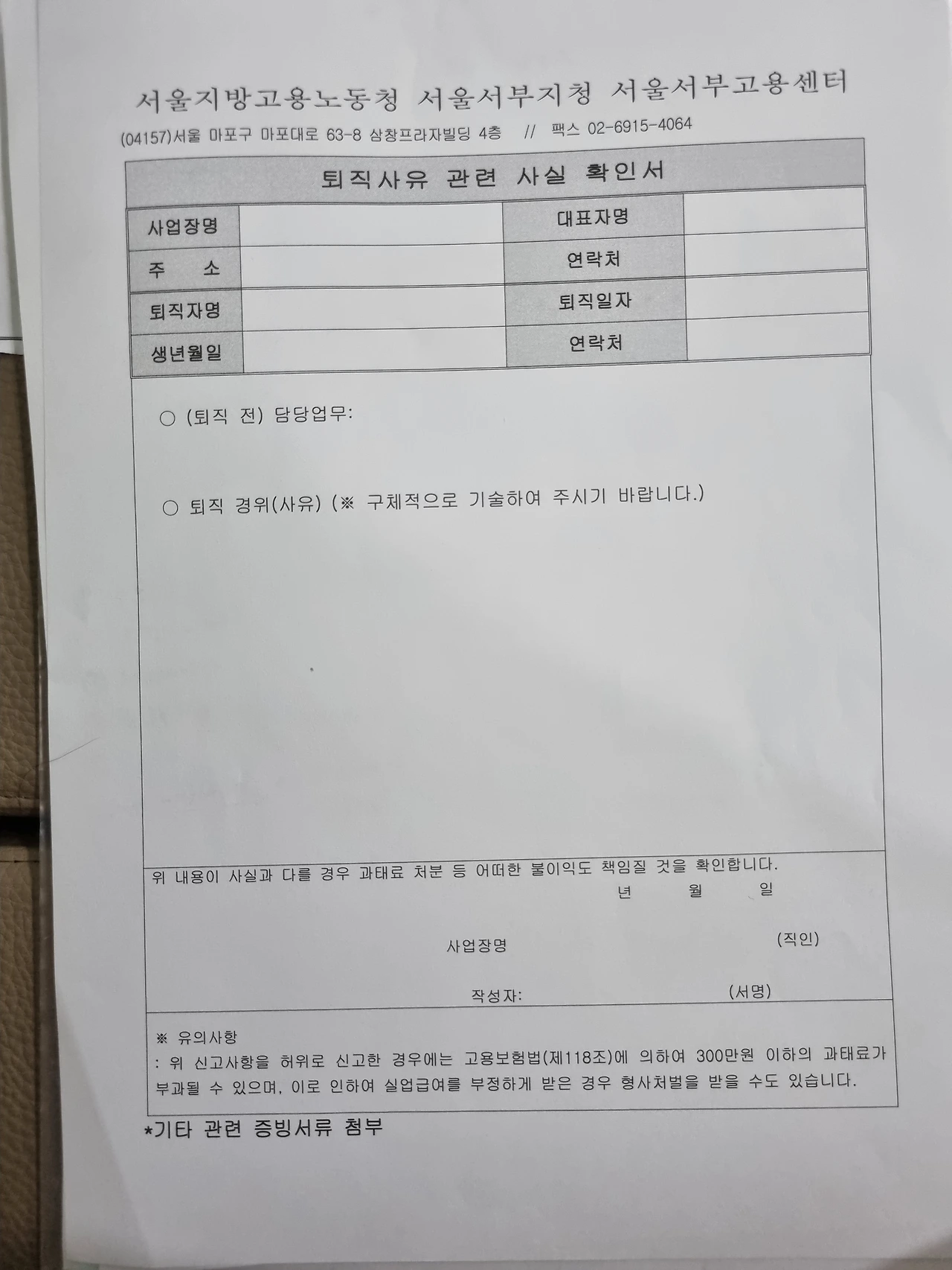 4. 퇴직 사유 관련 사실 확인서(회사에서 작성)