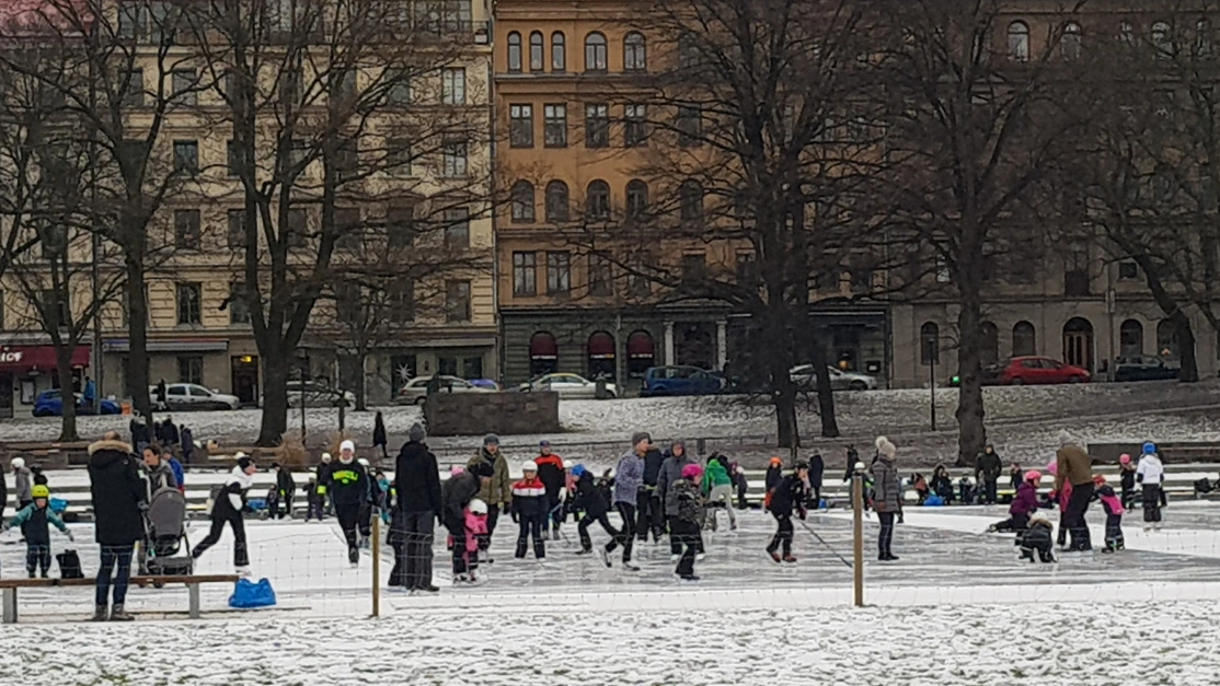 겨울이 되면 스케이트장으로 바뀌는 바사파켄의 풀밭@Vasaparken