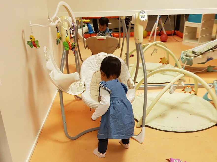 미끄럼틀과 장난감, 게임기부터 바운서까지 있어서아주 간난아이부터 이용할 수 있다.@Odenplan지점의 mini SATS