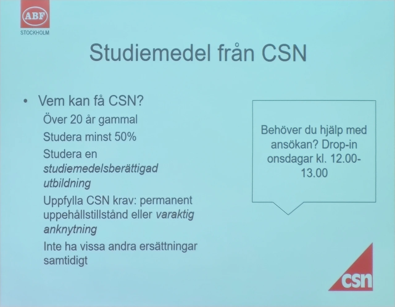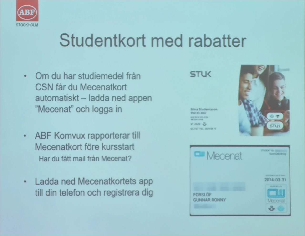 SVA부터는 정부(CSN)에서 주는 학생보조금(3,652kr, 43만 원 정도)이랑 대출도 받을 수 있고 교통카드로 학생혜택도 받을 수 있어서 좋은 듯하다.. 물론 나는 대학원 때문에 이미 받고 있는 혜택이라 크게 의미는 없지만.