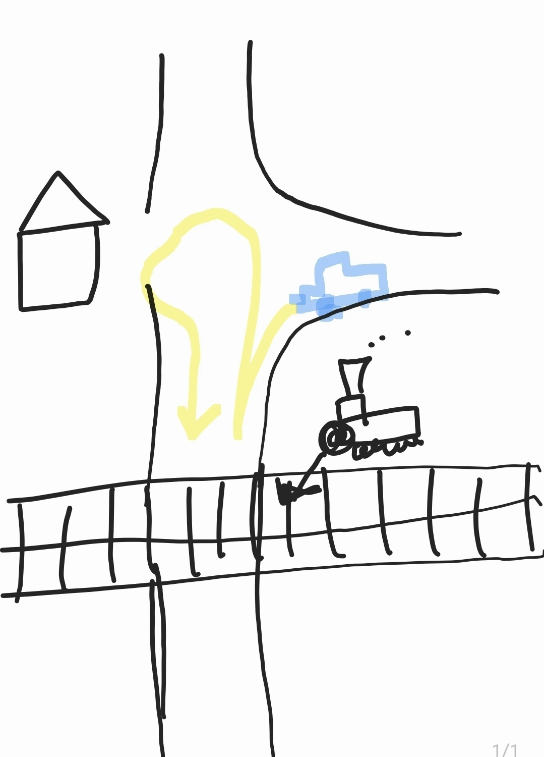 비슷한 게 또 하나 있었다. 철도를 건너서 'ㅏ'자 모양으로 갈라지는 도로에 들어서자 강사는 우회전을 한 뒤 차를 멈추라고 했다. 그런 뒤 나에게 way- back을 하라고 했다. 이 말을 후진(reverse)을 하라고 이해하고는 후진을 하기 시작했다. 하지만 계속을 후진을 하면 철도 건널목을 후진으로 건너야 하는 상황. 아무리 신호등이 있어도 그건 위험해서 싫었다. 그래서 언제까지 가냐고 물었더니, 우린 원래 왔던 길로 다시 돌아갈 거란다. 아, 애초에 이건 후진이 아니라 돌아가라는 거였구나 싶었다. 그렇다면 굳이 후진을 할 필요가 없지 않나. 차를 돌려서 나가면 되는 것이었다.