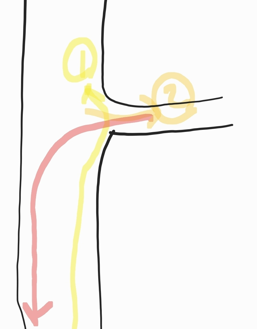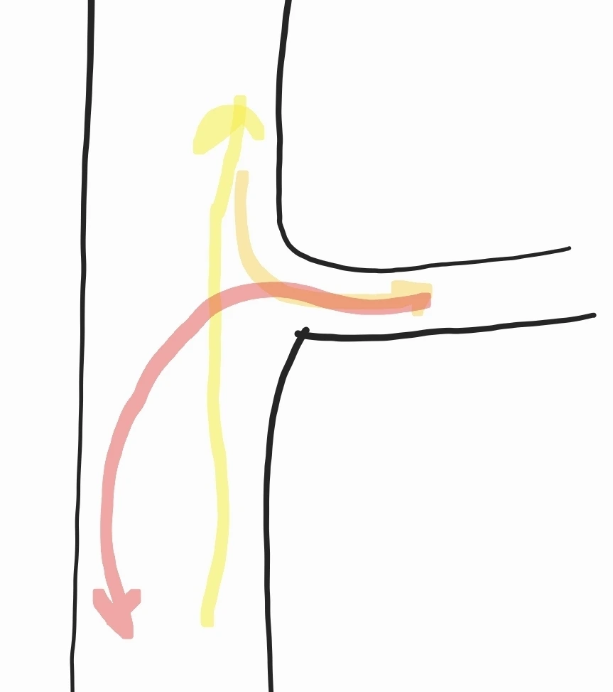 내 의도는 왼쪽 그림이었는데 오른쪽처럼 길 따라 직진한 뒤 후진해야 한단다.