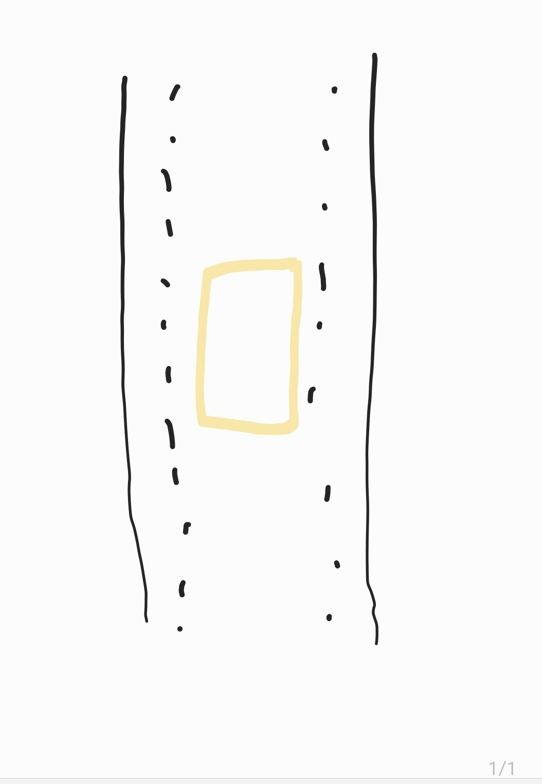 그리고 이번에는 두 번 차 돌려서 나와야 했는데 한 번은 남의 회사 마당을 이용해서 돌아 나왔고, 다음번에는 오른쪽에 있는 샛길을 이용해서 후진-좌회전으로 나와야 했다. 이번 회사 마당은 사실 지난번에 안 된다고 한 남의 집과 똑같이 생긴 건물들이 있는 곳이었다. 둘의 차이는 간판이 있고 없고 정도. 그래도 회사 주차장은 들어가도 된단다. 두 번째 돌아 나오기는 조금 더 까다로웠는데 중앙선이 안 그려진 70km/h 도로 중간에서 돌아 나오는 것이었기 때문이다. 다행히 풀들 사이 조그맣게 있는 비포장 샛길이 보였고 거기를 아래그림처럼 해서 가려했다가 지적을 받았다.