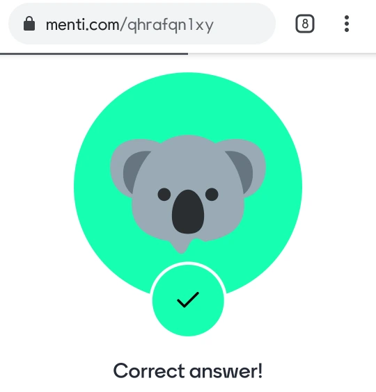 몇 개 퀴즈가 흘러간 후에야 화면 위에 조그맣게 적힌 go to www.menti.com and use the code 89 28 69 3이라는 글씨를 발견할 수 있었다.