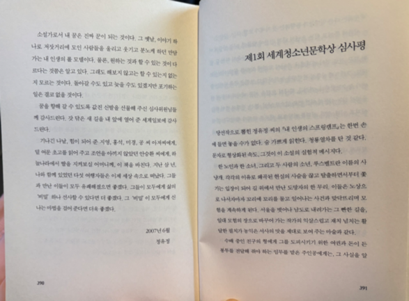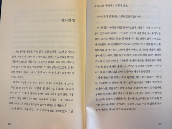 그리고 특이하게 간호대를 나와서 삼십 대 중반에 처음으로 소설을 내셨는데, 그래서인지 ‘나는 문학을 공부한 적이 없다 ‘로 시작하는 작가의 말이 마음이 남았다. 이제 고만 미루고 소설.. 조금 더 열심히 써보자.