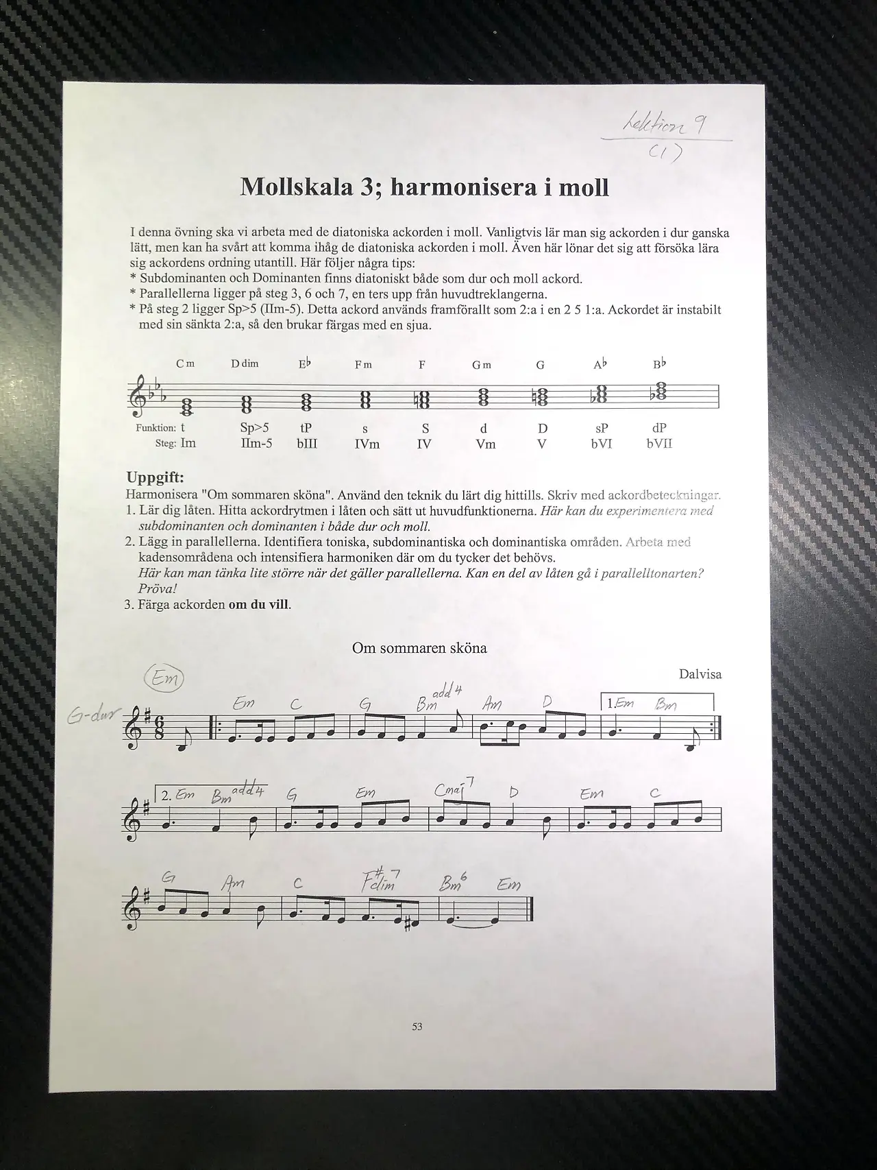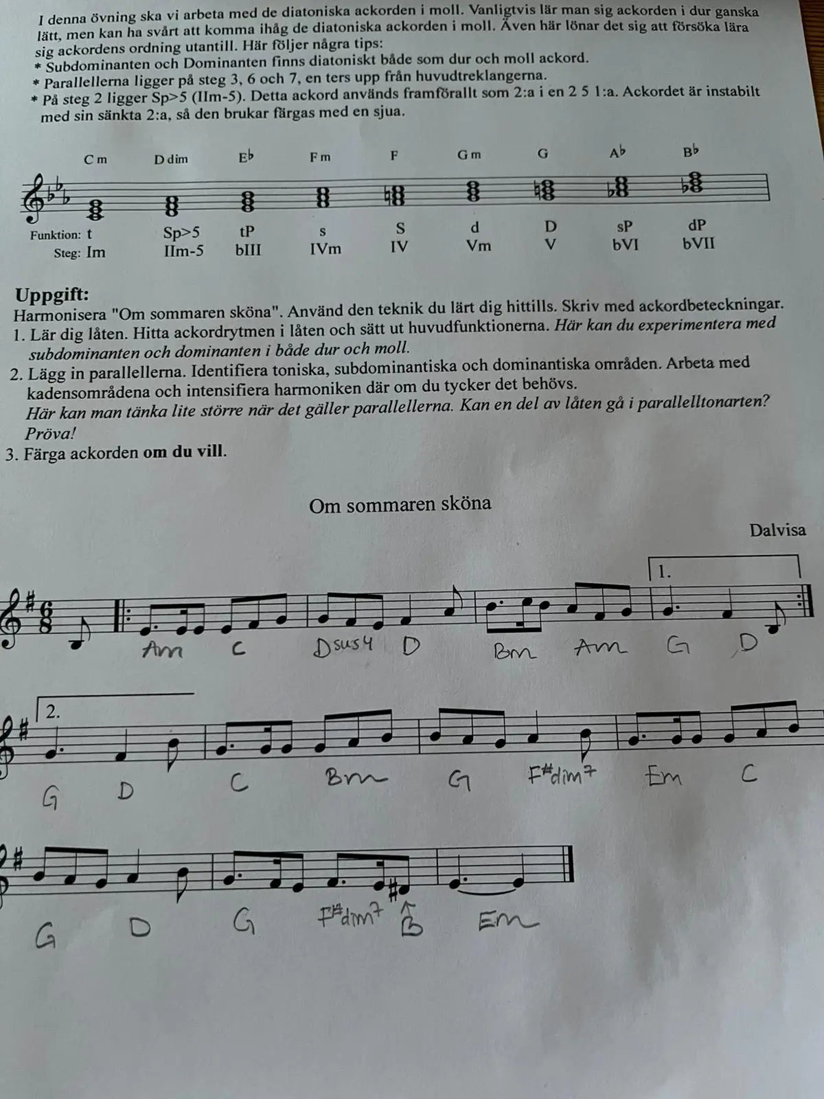전 주, 마지막 화음연주 과제를 받고 처음부터 계속 함께 화음연주를 했던 카린, 아스트리드는 수요일에 만나 연습을 하기로 했더랬다. 그전에 아래처럼 미리 멜로디에 맞는 화음을 각자 만들어오고 말이다.