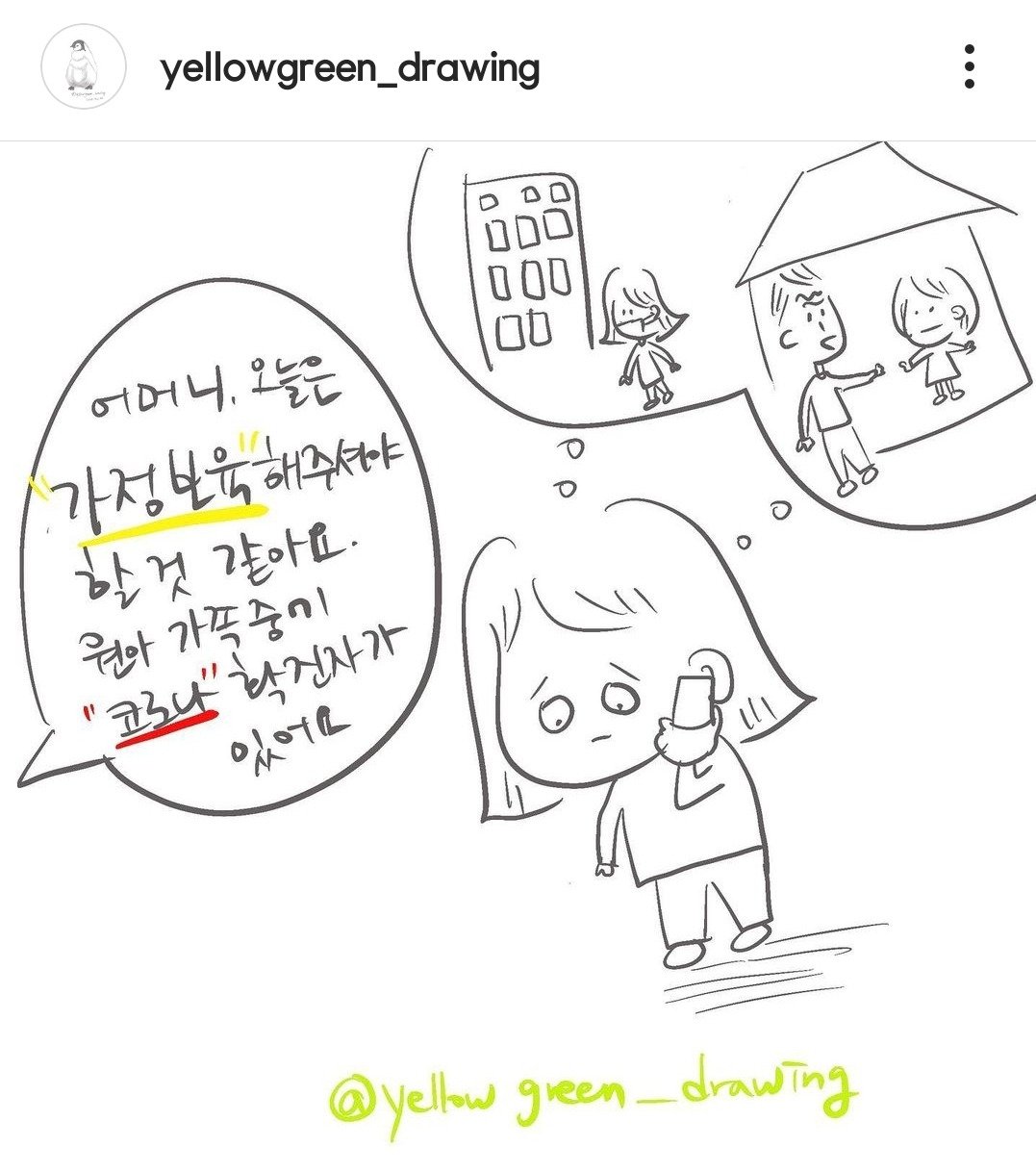 어린이집 원아 가족 중에 코로나 확진자가 있어서오늘은 가족 보육해주셔야 할 것 같아요.