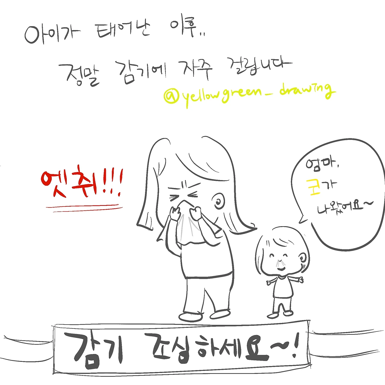정말 신기하게도, 아이를 키우면서 저도 감기에 자주 걸리네요. 자주 걸리고 잘 안 낫아서 거의 감기를 달고 사는 느낌이에요.