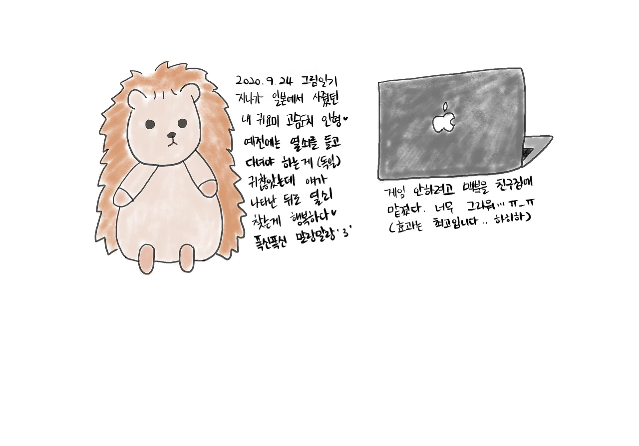 그래서 지금이라도 미래의 나를 위해 그림 일기를 그려보자고 며칠 전부터 그림을 끄적거리기 시작한 흔적을 몇 장 남겨본다.