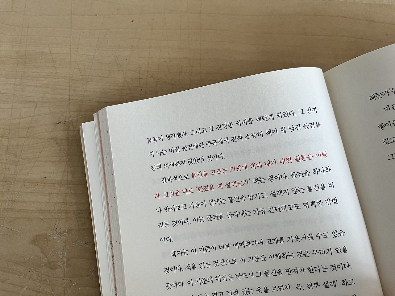 옷을 험하게 입는 편은 아니기 때문인지 낡은 옷보다는 멀쩡한 옷들이 많았다. 저렴하게 샀던 옷들도 십년은 더 지난 것 같은데 여전히 멀쩡한 옷들이 많다. 그래서 보내기가 좀 어려웠다. 다시 한 번 책을 꺼내 가장 중요한 부분을 읽었다.