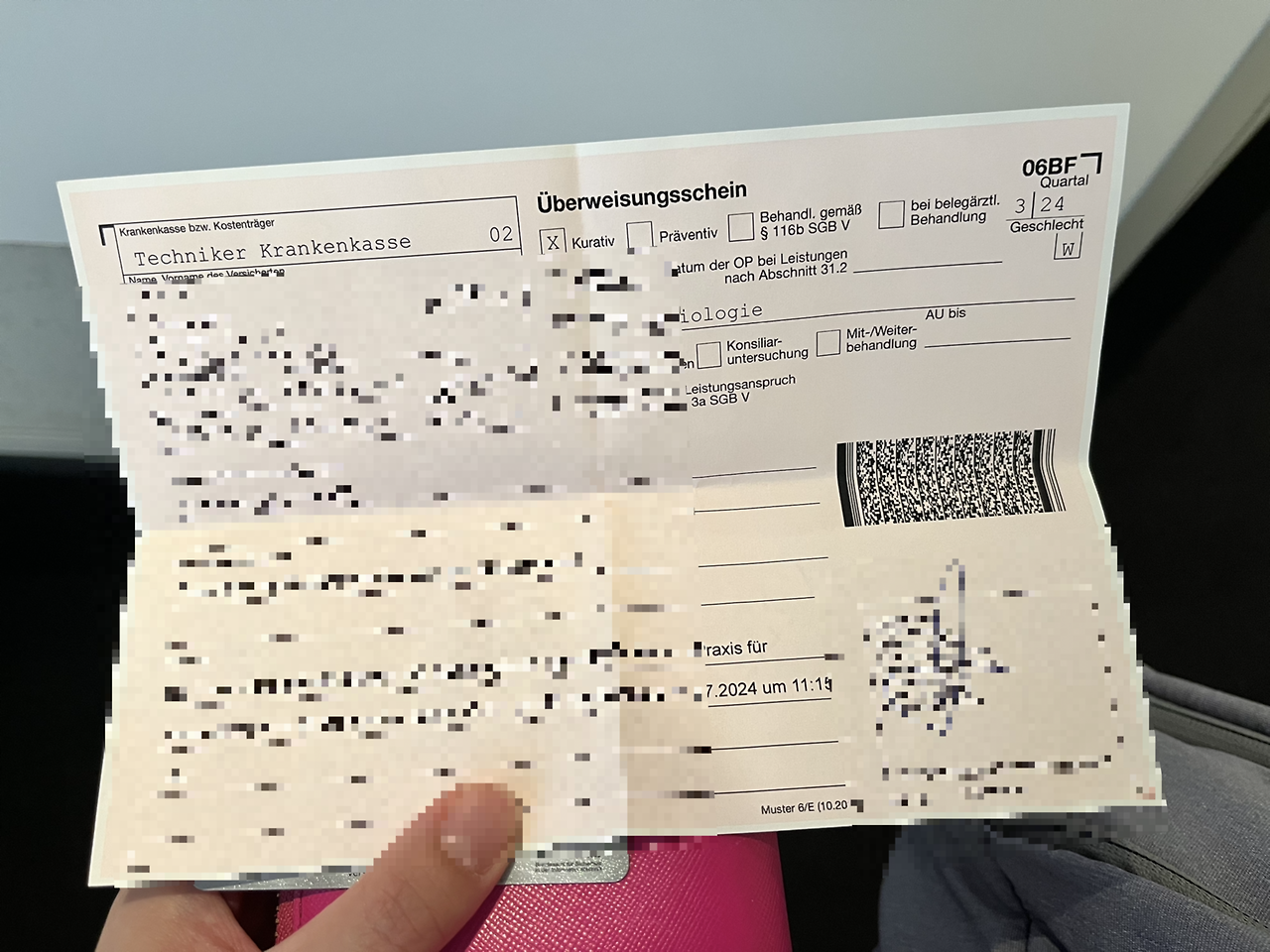 지난번에도 쓴 것처럼 요즘 병원을 다니고 있다. 이번 주에는 흉부 엑스레이 검사를 하러 가야 했다. 독일에서 엑스레이 검사를 받으려면 방사선과(Radiologie)를 찾아가야 한다. 처음에는 대학 병원 의사가 내가 직접 예약해야 한다고 해서 여기저기 검색하고 예약하면서 시간도 오래 걸리고 찾기가 어려워 고생을 좀 했는데, 막상 한 군데 찾아서 갔더니 거기도 대학병원처럼 의사 소견서(Überweisung)가 필요하다고 했다. 그래서 일반 의사(Hausarzt:in)를 찾아갔더니 소견서도 써주고 예약도 아주 빠른 시일 내로 잡아주었다.