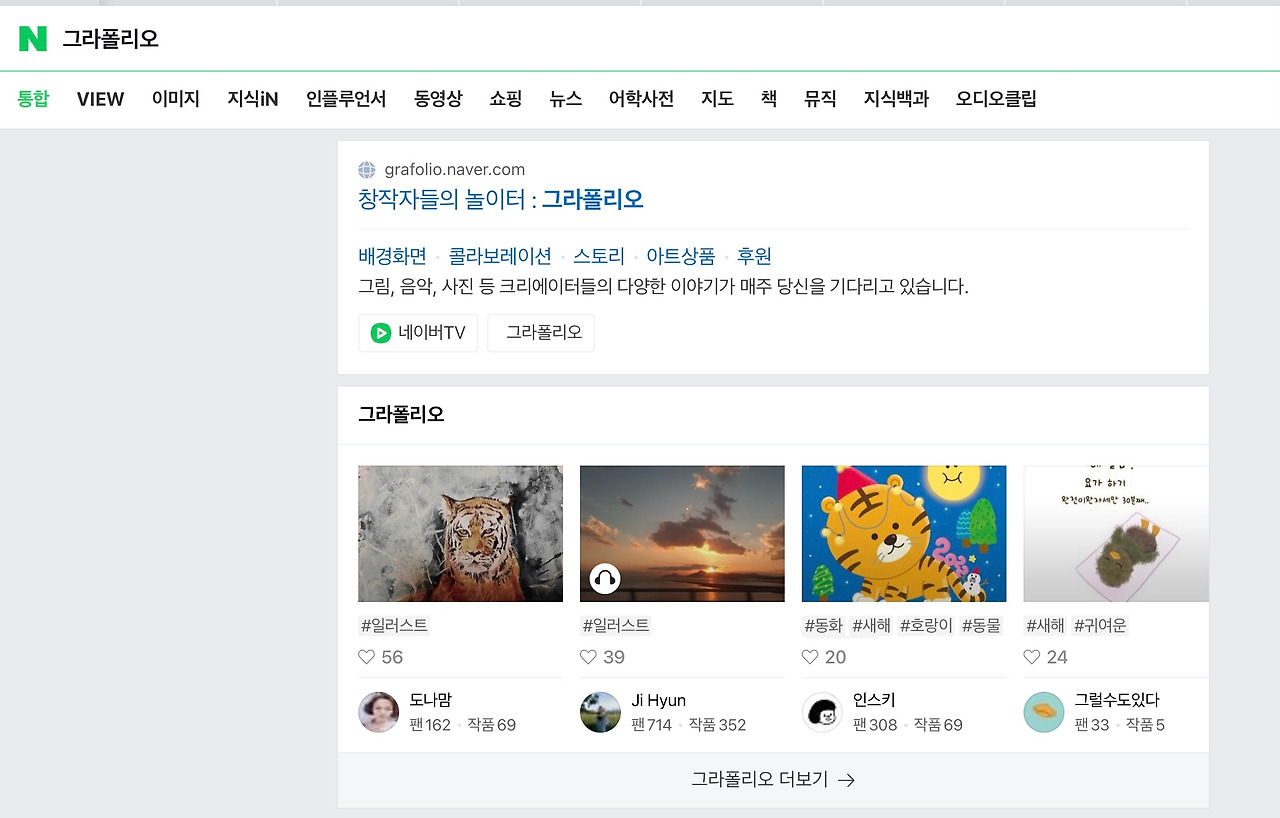 현재 네이버 검색창에 '그라폴리오'를 검색하면 보우의 그라폴리오가 메인을 장식하게 되었어요