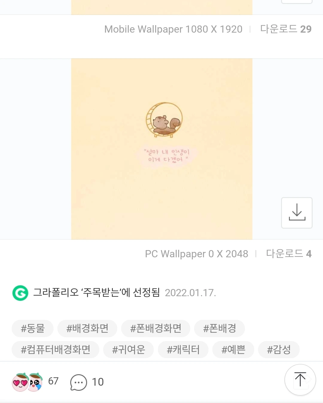 다람쥐 바탕화면이 그라폴리오 '주목받는'에 선정되었습니다
