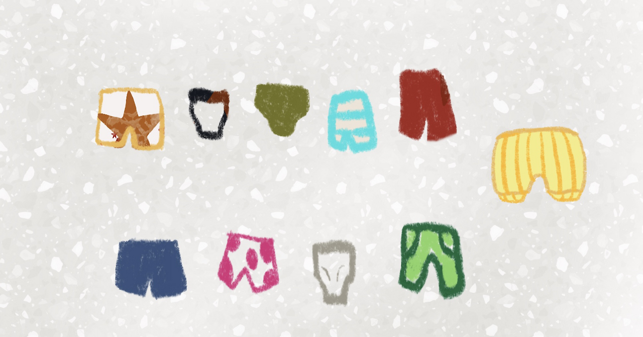 빨간 팬티, 별 모양 팬티, 줄무늬 팬티 각양각색의 팬티들이 줄을지어 걸어가는 모양이었죠.