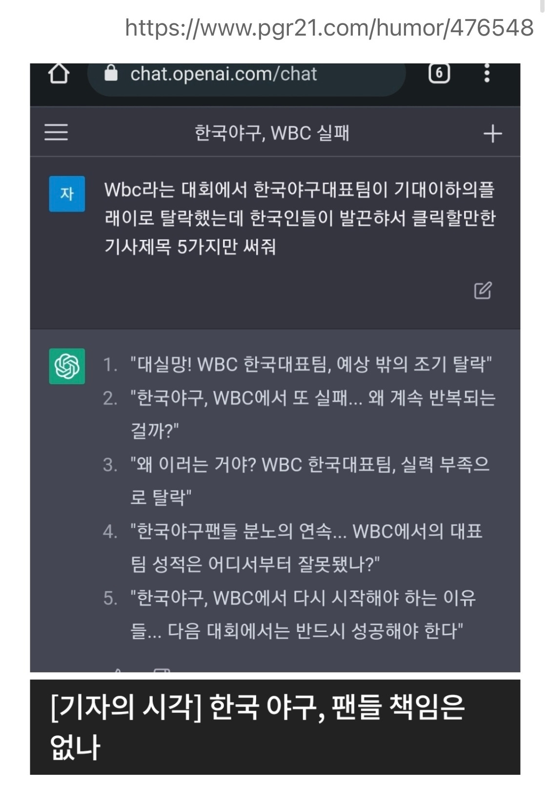 기가맥히죠. 야구사태의 다른 프레임을 제시하는 제목ㅎㅎ. 의외로 대체 안될 직업이라는 식의 제목의 게시글이었다. 이게 제목만의 문제라기보다는 남들이 다 어떤 얘길 할 때 다른 소재를 어떤 관점으로 다르게 바라보고 그 관점에 맞게 편집된 정보를 전달할 것이냐의 문제.