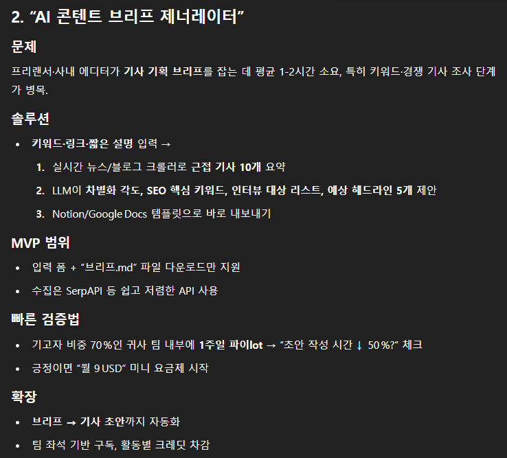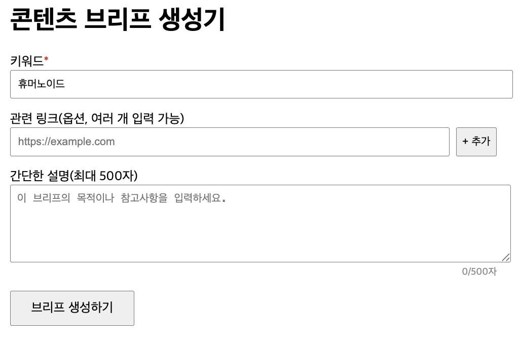 이 과정을 거쳐 챗GPT o3가 골라준 게 콘텐츠 브리프 제너레이터였습니다.