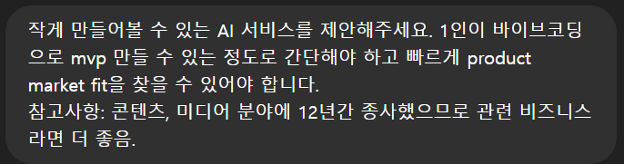 하지만 뭘 만들어야 할지 모르겠는 겁니다. 그래서 자신 있게 챗GPT에게 물었습니다. o3 모델을 썼구요.
